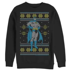 DC COMICS Men’s Batman Ugly Christmas Dark Knight Pose Sweatshirt