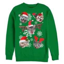 Men’s Lost Gods Ugly Christmas Cat Reindeer Snowflakes Sweatshirt