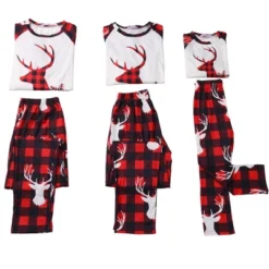 Cheibear Christmas Deer Loungewear Long Sleeves Tee Plaid Pants 2 Piece Family Pajama Sets