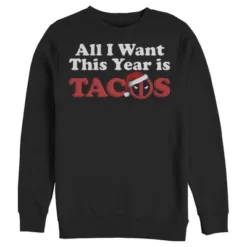 Men’s Marvel Christmas Deadpool All I Want Is Tacos Sweatshirt