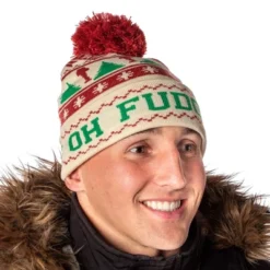 A Christmas Story Oh Fudge Leg Lamp Tree Far Isle Design Cuffed Adult Pom Beanie Multicoloured