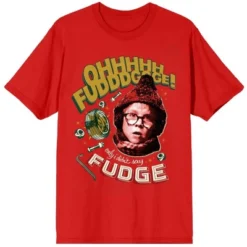Ohh fudge, this ladies’ red graphic t-shirt is perfect for the holidays! The big, colorful Ralphie image has been professionally printed and applied so it will last long enough to get you through any adventure life throws your way. Made of 100% preshrunk cotton, this red A Christmas Story fan apparel features short sleeves for comfort and style in any weather. It can be machine washed with like colors, then tumble dried for easy care. As an officially licensed product, the Ohh Fudge t-shirt makes a great gift for any fan of A Christmas Story.