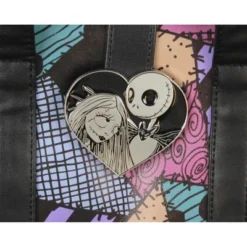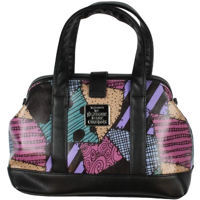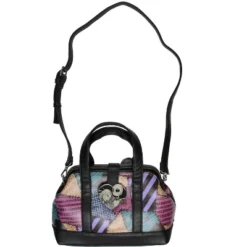 This is an Officially Licensed Nightmare Before Christmas handbag crossbody purse. Tim Burton’s The Nightmare Before Christmas is a magical stop-motion animation with fantastic characters like Jack Skellington, Zero, The Pumpkin King, Sally, Dr. Finkelstein, Lock stock and barrel, and more! This purse is exceptional with Sally’s stitched dress inspired allover design. The bag features black accents on the bottom and the handles with a great metal magnetic closure badge of Sally and her love Jack Skellington. The inside of this bag is spacious with two small fabric pockets and a zipper pocket. This bag is perfect to carry all of your stuff for school, travel, shopping or any other adventure.