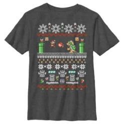 - Strut your stuff with this stylish new Christmas Boy’s Tee Shirt that is perfect for every occasion! Featuring your favorite characters like Bowser, Koopa Troopa, Mario, Piranha Plant.