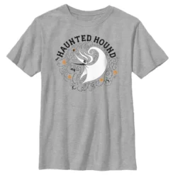 - Strut your stuff with this stylish new boys’ t-shirt that is perfect for the scariest time of the year! Featuring the adorable Zero with bats, jack-o’-lanterns, thorns, and the phrase: “Haunted Hound” printed all around him.