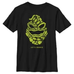 - Strut your stuff with this stylish new boys’ t-shirt that is perfect for every occasion! Featuring a portrait of Oogie Boogie made out of bugs and insects along with the phrase: “Let’s Boogie” printed in green lettering below.