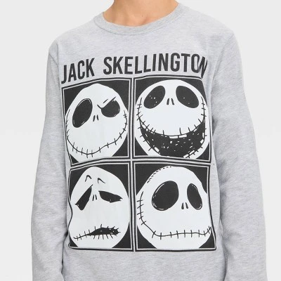 The Nightmare Before Christmas Jack Skellington Halloween Long-Sleeve Graphic T-Shirt will add holiday movie magic to your kid’s casualwear wardrobe. The pullover tee showcases boxed illustrations of Jack’s face with different expressions beneath the name “Jack Skellington” in black and white, which pops from the gray background with spooky-sweet vibes. Made from a lightweight cotton blend, this jersey T-shirt tailored in a regular fit that hits below the waist will help them stay comfortable during any activity.