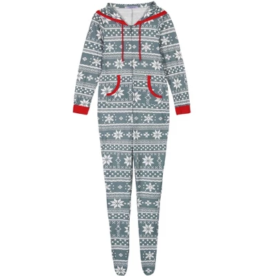 - Featured Snow, tree and Xmas print, hoodie and color block cuffs, this one piece pajama makes you feel cozy all night, and suits for a Christmas home party