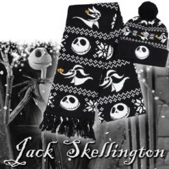 - HIGH-QUALITY INTERWOVEN DESIGN – This Nightmare Before Christmas scarf and beanie set features a fun Jack and Zero interwoven design. The beanie has a pom top with a Jack Skellington embroidered patch