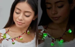 - 30-inch light-up string necklace boasts Christmas lights and The Grinch heads that’ll twinkle at the push of a button