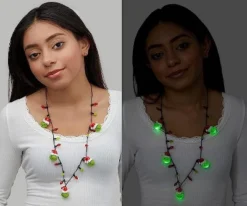 The Grinch Jewelry For Dr. Seuss Fans. Treat Yourself Or A Person In Your Life Who Loves Our Favorite Christmas Curmudgeon From How The Grinch Stole Christmas! With This Novelty Necklace. Light-Up Necklace Features Christmas Lights And The Grinch In A Santa Hat And Looks Great With The Grinch Halloween Costumes And Christmas Theme Looks.