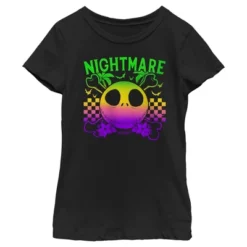 - Enjoy comfort and fashion at the same time with this unique girls’ graphic tee design from The Nightmare Before Christmas.