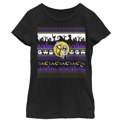 - Strut your stuff with this stylish new girls’ t-shirt that is perfect for the scariest time of the year! Featuring Jack, Sally, bats, moons, and graveyards in an ugly sweater pattern across the front.