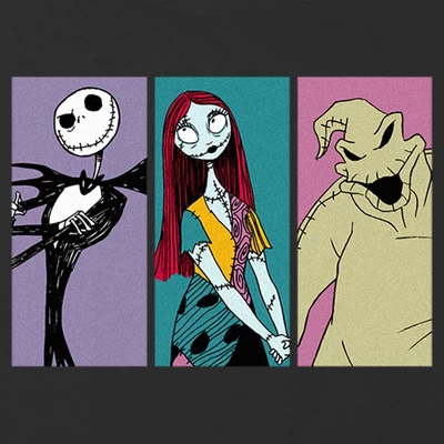 - Strut your stuff with this stylish new girls’ cropped t-shirt that is perfect for every occasion! Featuring Jack, Sally, and Oogie Boogie in colorful portraits across the front.