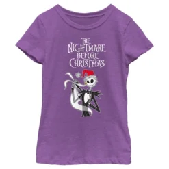 - Strut your stuff with this stylish new girls’ t-shirt that is perfect for the holidays! Featuring Jack Skellington in a Santa hat alongside his best friend Zero and the official movie logo across the top.