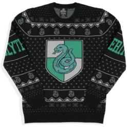 - LARGE HOUSE CREST DESIGN – All 4 houses from the series are available, Gryffindor, Slytherin, Ravenclaw, and Hufflepuff. The Harry Potter ugly sweaters each have a large house crest logo of your choice on the front with script logos on each arm.