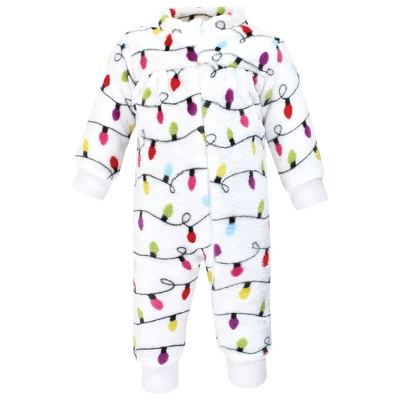 Hudson Baby plush jumpsuits are comfortable and cozy for outdoor and indoor wear. Our plush jumpsuits feature fun 3d animal hooded designs, perfect for play time, story time, Halloween and parties. With snaps on crotch and legs and chest zipper, our jumpsuits make for a no fuss, easy dressing experience. Hudson Baby offers the widest assortment in Christmas apparel, Christmas outfits and sweaters, Christmas pajamas, Christmas blankets and throw blankets, and Christmas socks. Our vast product assortment for babies, toddlers and kids make for great stocking stuffers for the whole family.