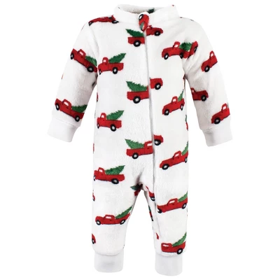 Hudson Baby plush jumpsuits are comfortable and cozy for outdoor and indoor wear. Our plush jumpsuits feature fun 3d animal hooded designs, perfect for play time, story time, Halloween and parties. With snaps on crotch and legs and chest zipper, our jumpsuits make for a no fuss, easy dressing experience. Hudson Baby offers the widest assortment in Christmas apparel, Christmas outfits and sweaters, Christmas pajamas, Christmas blankets and throw blankets, and Christmas socks. Our vast product assortment for babies, toddlers and kids make for great stocking stuffers for the whole family.