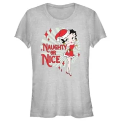 - Strut your stuff with this stylish new Christmas juniors’ tee that is perfect for the holidays! Featuring your favorite classic icon, Betty Boop, wearing a Santa hat alongside the text “Naughty or Nice.”
