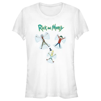 - Strut your stuff with this stylish new Christmas juniors’ tee that is perfect for the holidays! Featuring your favorite adventurers like Rick, Morty and Mr. Poopybutthole making snow angels in the snow!