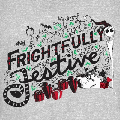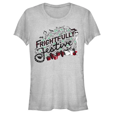 - Strut your stuff with this stylish new Christmas juniors’ t-shirt that is perfect for the holidays! Featuring Jack dressed up as “Sandy Claws” alongside the phrase: “Frightfully Festive” and holiday-themed doodles.