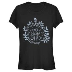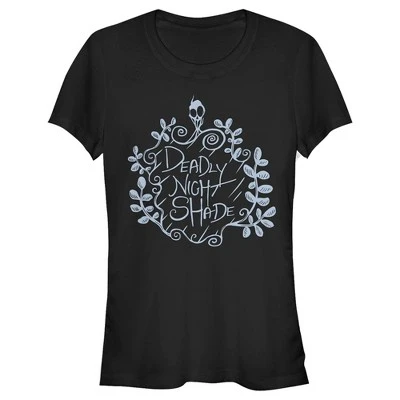 Make your way to Halloween Town and join the scary fun in this officially licensed Disney The Nightmare Before Christmas Halloween Deadly Night Shade Juniors’ Graphic T-Shirt! This ghostly juniors’ design features features “Deadly Night Shade” in a spooky font surrounded by the toxic herb itself, that Sally used to poison Dr. Finklestein. You will not want to miss out on this tee that is perfect for the spooky Halloween season!
