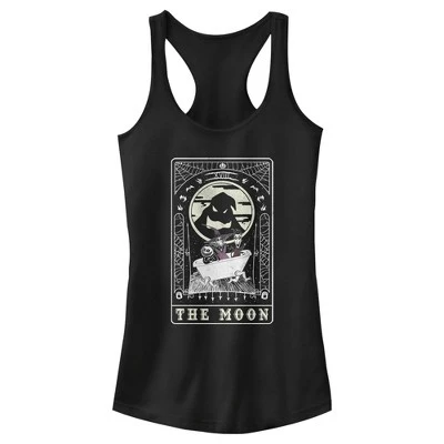 - Strut your stuff with this stylish new Halloween Juniors’ Racerback Tank Top that is perfect for the spooky season! Featuring Oogie Boogie as the moon tarot card, with a special appearance of Lock, Shock, and Barrel in their four-legged bathtub.