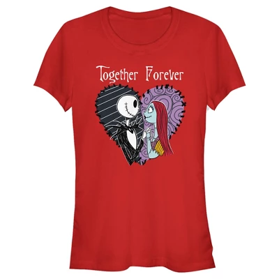 - Strut your stuff with this stylish new juniors’ tee featuring Jack Skellington and Sally inside a heart with “Together Forever” printed above.