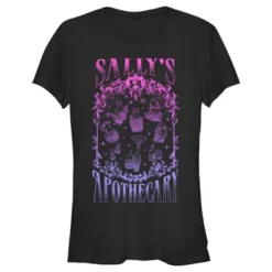- Strut your stuff with this stylish new juniors’ t-shirt that is perfect for every occasion! Featuring Sally’s iconic potion jars including Frog’s Breath, Fog Juice, Worm’s Wart, Witch Hazel, and Deadly Nightshade printed in a colorful neon print that fades from pink to purple.