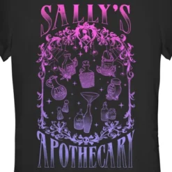 - Strut your stuff with this stylish new juniors’ t-shirt that is perfect for every occasion! Featuring Sally’s iconic potion jars including Frog’s Breath, Fog Juice, Worm’s Wart, Witch Hazel, and Deadly Nightshade printed in a colorful neon print that fades from pink to purple.