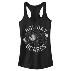 - Strut your stuff with this stylish new Halloween juniors’ tank featuring a black and white graphic of Scary Teddy and the phrase: “Holiday Scares.”