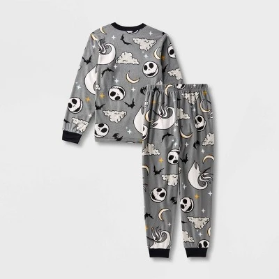 Your child will love dressing up for bedtime in fun, Halloween-themed style in this 2-Piece Kids’ The Nightmare Before Christmas Jack Skellington Pajama Set. This set includes a long-sleeve pullover shirt and pajama pants, both crafted from a soft fabric for all-night comfortable wear. Designed in a black hue with gray sleeves, the pajama shirt features a tarot card-like print on the front with Jack Skellington and the message “Happy Haunting.” The accompanied pajama pants feature allover Jack Skellington and Zero illustrations, making the pair a great pick for movie nights or Halloween photo ops.