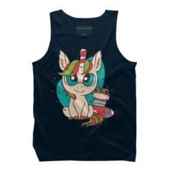 Men’s Design By Humans Christmas Candy Cane Unicorn With Stocking By Rasok Tank Top