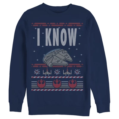 You love Christmas, we know. Celebrate your favorite quote the Christmas way with the Star Wars Christmas I Know Quote Men’s Sweatshirt. The famous line “I Know” is printed in a Christmas style on this festive Star Wars sweatshirt.