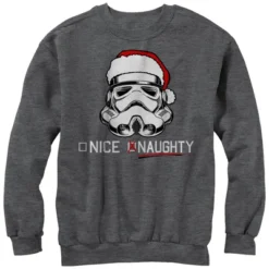 Will the Empire get coal in their stockings? The Star Wars Christmas Stormtrooper Naughty List Heather Charcoal Sweatshirt knows the answer! A stormtrooper wearing a Santa hat is printed above a checked box on this Star Wars holiday sweatshirt showing that stormtroopers are definitely on the naughty list.