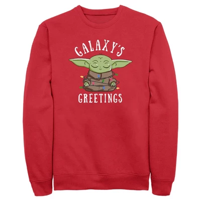 - Strut your stuff with this stylish new men’s crewneck sweatshirt that is perfect for the holidays! Featuring Grogu meditating while being wrapped in Christmas lights with the text: “Galaxy’s Greetings,” across the front.