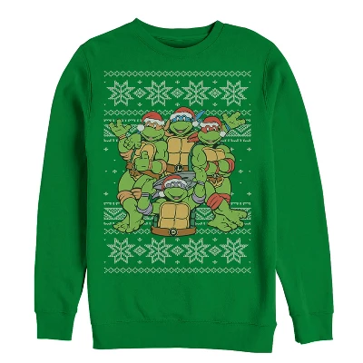 You just know that the Teenage Mutant Ninja Turtles are on Santaâs Nice List and will find this officially licensed Teenage Mutant Ninja Turtles Ugly Christmas Sweater Men’s Sweatshirt under the Christmas tree this year! Donatello, Leonardo, Michelangelo, and Raphael are featured wearing Santa Claus hats on this festive ugly Christmas sweater that is perfect for all the folks on your Christmas list!