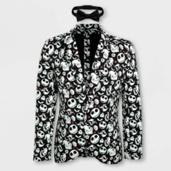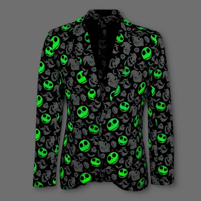 - Formal jacket features allover glow-in-the-dark print pattern inspired by Tim Burton’s The Nightmare Before Christmas including Jack, Oogie Boogie and Zero.