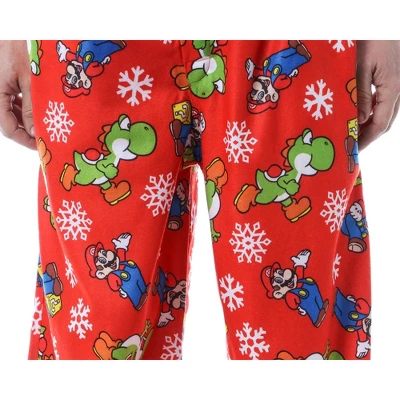 - CLASSIC DESIGN – These pants feature a tossed print of Yoshi and Mario, the two surrounded by presents and snowflakes. The pajama pants are the perfect mix of comfortable and casual, making them ideal for curling up enjoying the cold season!