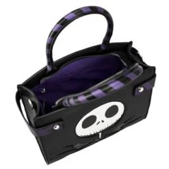 - MULTIPLE COMPARTMENTS – The Jack Skellington Nightmare Before Christmas movie character black bag includes a large compartment as well as an interior zippered pocket.