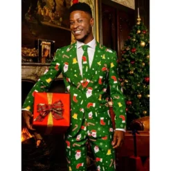 Santa Claus is coming to town and that means we need to dress up in festive apparel. We’ve got you covered with our novelty Christmas suits. It’s fun and stylish attire, so it keeps you looking good while showing off your crazy side on Christmas themed occasions. We mean: we all have that rebel side, right? Don’t worry though. From your old-fashioned boss to that cool nephew, everybody will love your Christmas dress jacket, pants and tie as much as you do. By the way: did you know you could suit up the entire family in OppoSuits Christmas suits? Would be the best Christmas card-picture ever. If you’re looking for a way to switch up the ugly christmas sweater game, allow us to help you out!