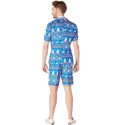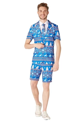 LThis festive Christmas costume is the perfect outfit for the x-mas and New Year’s Eve season, in case you like to celebrate it in a hot climate. It’s a more stylish version on the ugly Christmas sweater, so you’ll be the best-dressed of your family and friends for sure! Celebrating Christmas on the beach? This short sleeve suit with shorts is all you need!
