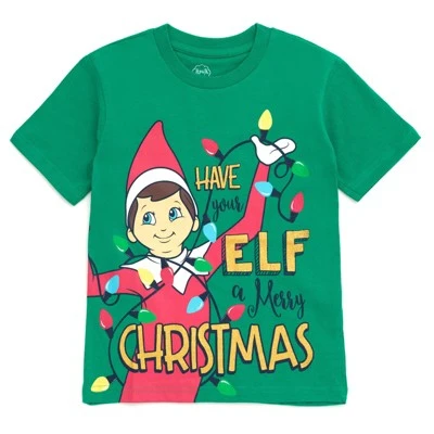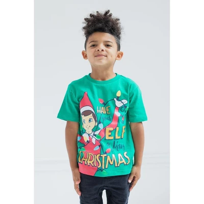 Celebrate the holidays in this adorable Elf on the Shelf Short Sleeve T-Shirt! Your child is on the good list this year and Santaâs scout elves have made sure to tell their best friend St. Nick. Your kid is ready for a festive and magical Christmas dressed in this short sleeve graphic tee shirt.
