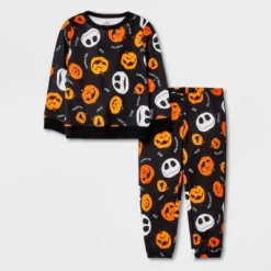 Set up your little trickster for exciting Halloween festivities in this The Nightmare Before Christmas Top and Bottom Set. This set includes a long-sleeve sweatshirt and jogger pants, both crafted from a midweight fabric for cozy comfort. Designed in a black hue, these pieces are adorned with allover Jack Skellington and jack-o’-lantern prints, making them a great pick throughout the spooky season.