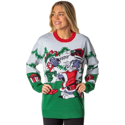 - FUNNY DESIGN – If you’re a fan of the classic cartoon Tom and Jerry, you know they always have it out for each other. Did you think Christmas would be any different? This Tom and Jerry Ugly Christmas Sweater features a detailed in-fabric woven pattern of the 2 characters up to their usual shenanigans! You can wear this pullover sweater with your favorite pair of jeans or as part of your pajamas