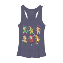 Women’s Design By Humans Christmas Dabbing Cartoon Animals By Shirtpublic Racerback Tank Top