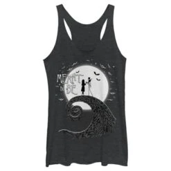 - Strut your stuff with this stylish new Halloween Women’s Racerback Tank Top that is perfect for the spooky season! Featuring the silhouettes of Jack Skellington and Sally on top of Spiral Hill holding hands alongside the text “Meant to Be” and a bright moon in the background.