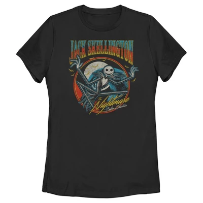 - Strut your stuff with this stylish new women’s t-shirt that is perfect for every occasion! Featuring a distressed graphic of Jack Skellington along with his name and the movie logo printed across the front.
